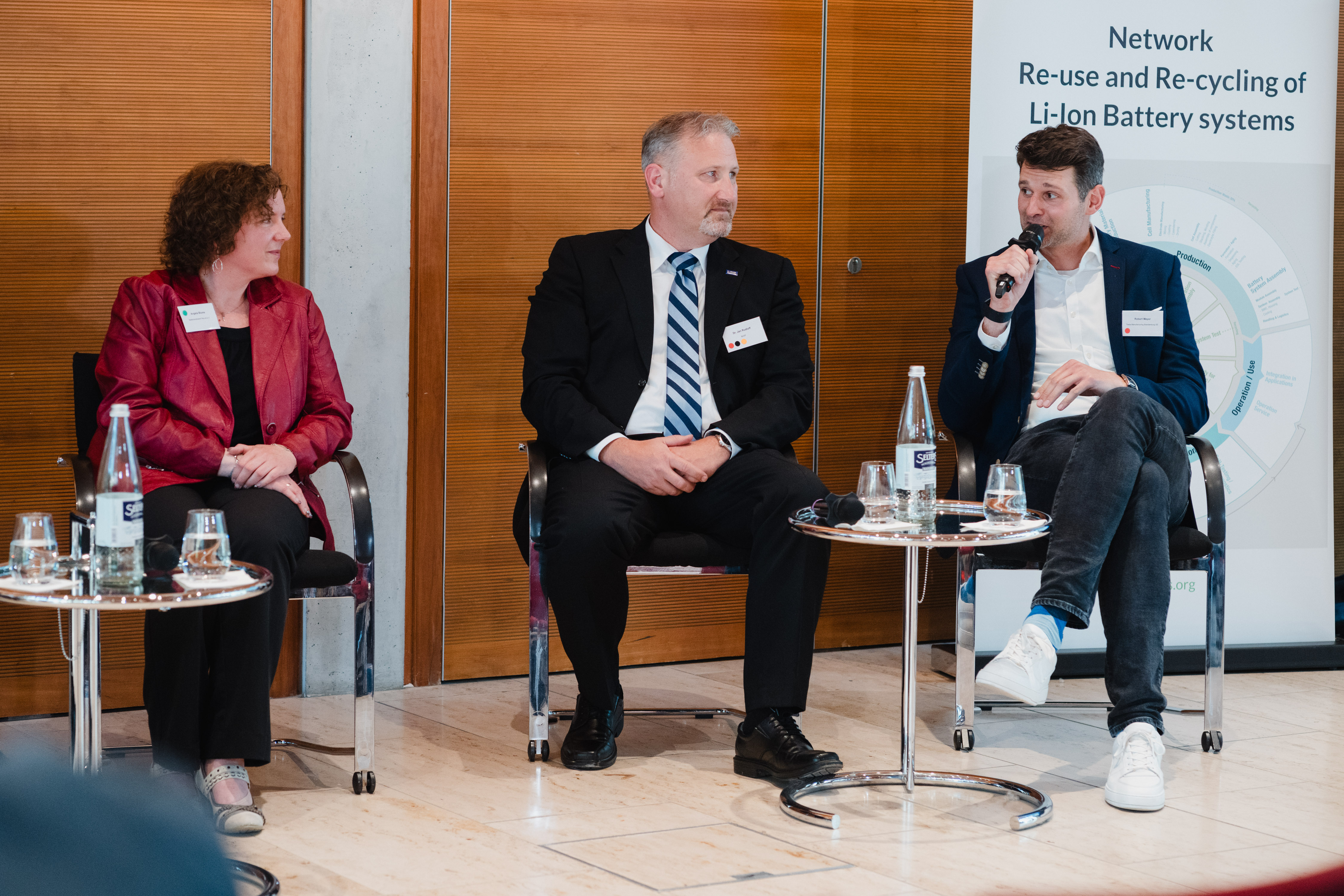 Im zweiten Teil der Veranstaltungen ging es um die Perspektiven der Batterieregion Berlin Brandenburg. Zwei inspirierende Impulse von Robert Meyer von Tesla Manufacturing Brandenburg SE und Dr. Jan Rudloff von BASF Battery Materials leiteten in einen Dialog zwischen Wirtschaft und Politik über. Moderiert von Dr. Steffen Kammradt (Wirtschaftsförderung Land Brandenburg GmbH (WFBB) diskutierten beide gemeinsam mit Daniel Keller (Minister für Wirtschaft, Arbeit, Energie und Klimaschutz des Landes Brandeburg), Severin Fischer (Staatssekretär für Wirtschaft, Energie und Betriebe Berlin) und Angela Blume vom ReLioS-Netzwerk was jetzt wichtig ist in der Region, um das Batterieökosystem weiter voran zu bringen.